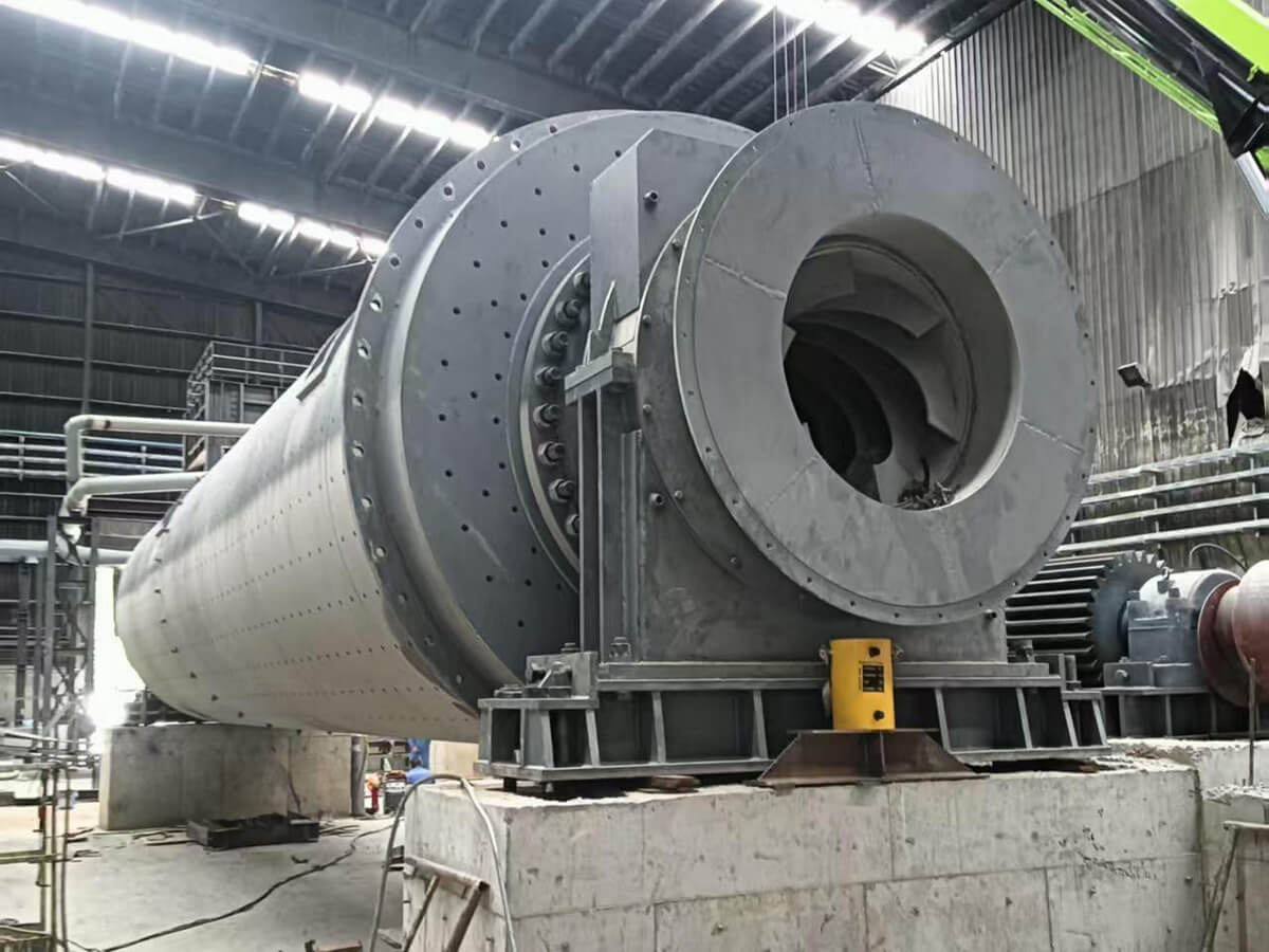 球磨机是一种由外齿轮传动的卧式旋转装置。物料通过主轴均匀地输送到研磨室。研磨室内设有梯形衬板和波纹衬板,并装有不同规格的钢球。筒体旋转产生的离心力使钢球上升到一定高度,冲击并研磨物料。研磨后的物料通过出料板排出,研磨过程即告完成。
