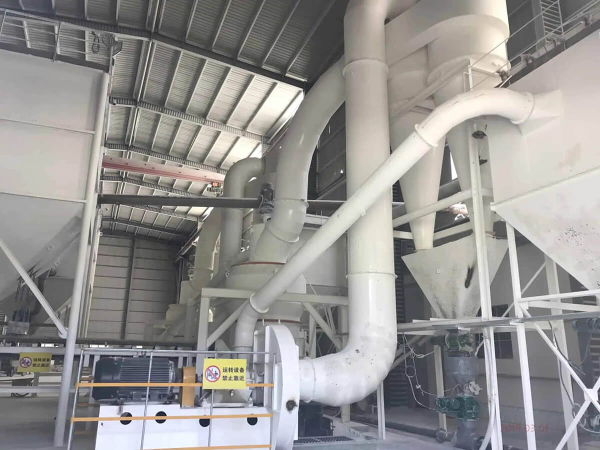 待磨物料进入研磨室后,由铲斗铲起,送至辊筒和磨环进行滚动。粉碎后的粉末随风机循环空气进入分析器。合格的细粉随气流进入旋风除尘器。较大的颗粒则落回研磨室进行再次研磨。循环空气返回风机,重复上述过程。剩余的空气进入袋式过滤器进行净化。当研磨辊和研磨环磨损到一定程度后,调整高压弹簧的长度,以保持研磨辊和研磨环之间恒定的研磨压力,从而保证稳定的产量和细度。