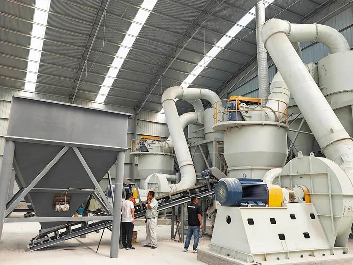 ✔ 高效研磨和粒度调节:采用高压弹簧系统增强研磨辊压力(800-1200kg),并采用闭式循环空气选择系统,实现80-425目粒度调节,部分型号可达1000目以上。