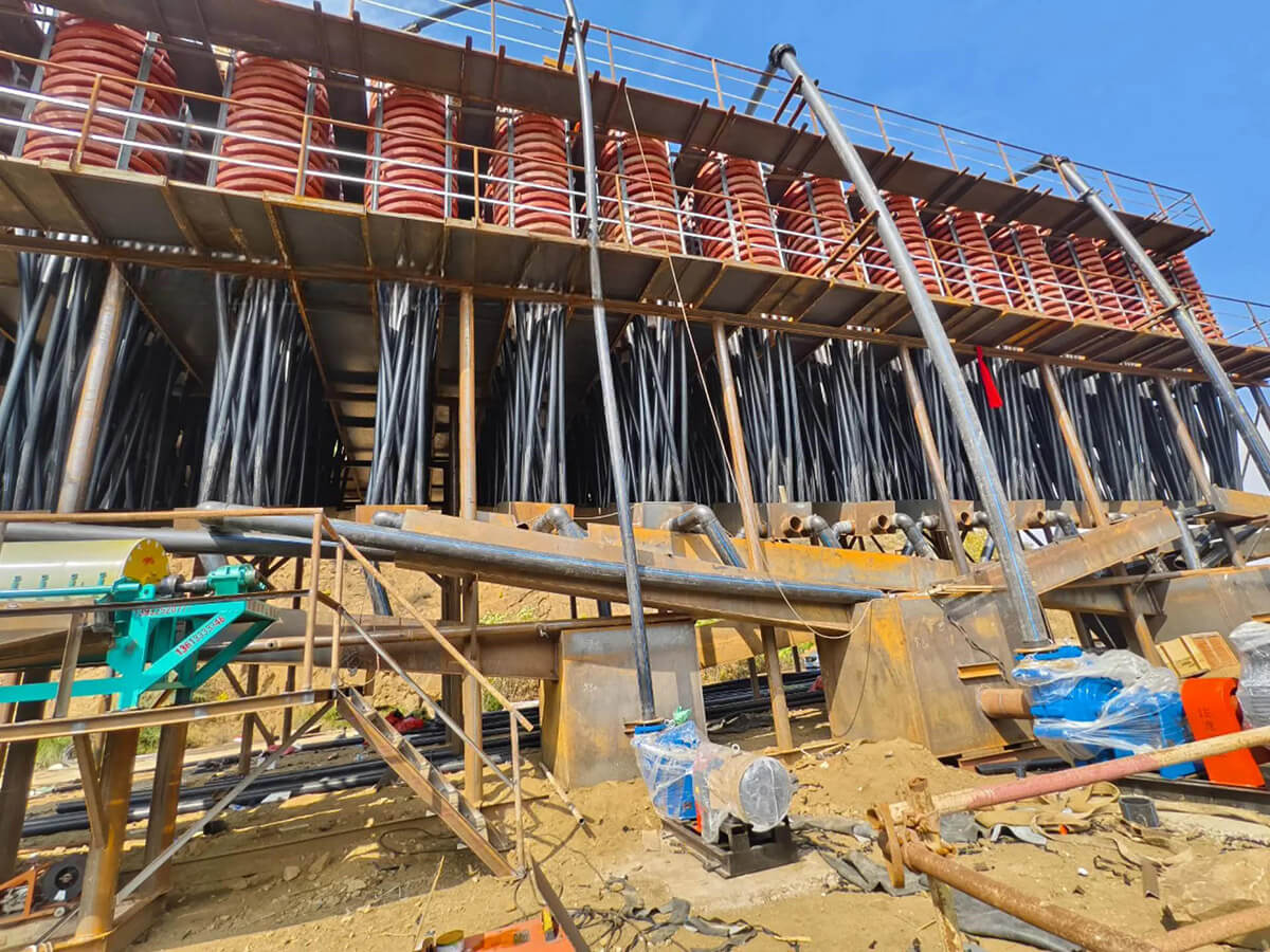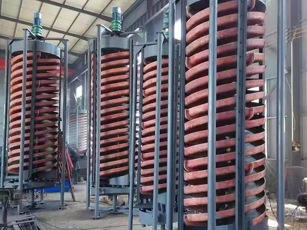 螺旋溜槽是一种高效、节能的重力选矿设备,广泛应用于金属与非金属矿物的分选作业。它利用矿物颗粒在螺旋斜面水流中因比重、粒度和形状差异而产生的不同运动轨迹,实现矿物的有效分离,具有结构简单、无动力消耗、操作维护方便等优点,特别适用于海滨、河畔、砂滩等砂矿开采场景。