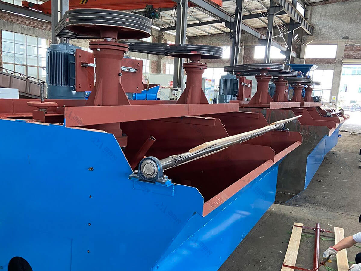 XJ型浮选机通过叶轮旋转实现矿浆的搅拌、充气和泡沫矿化: